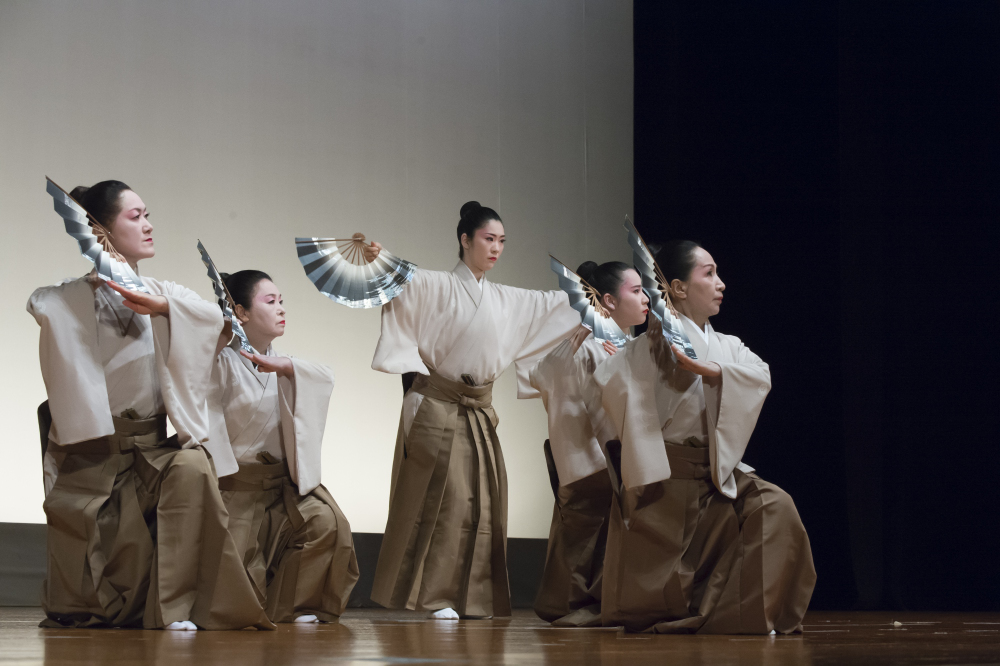 剣舞に女流の剣舞家が登場し、好評を博したことから、女性剣士が刀の代わりに舞扇を用いることが考案されたといわれています。現在は、剣舞の格調ある様式を受け継ぎ、総合的な舞台芸術として発展しています。