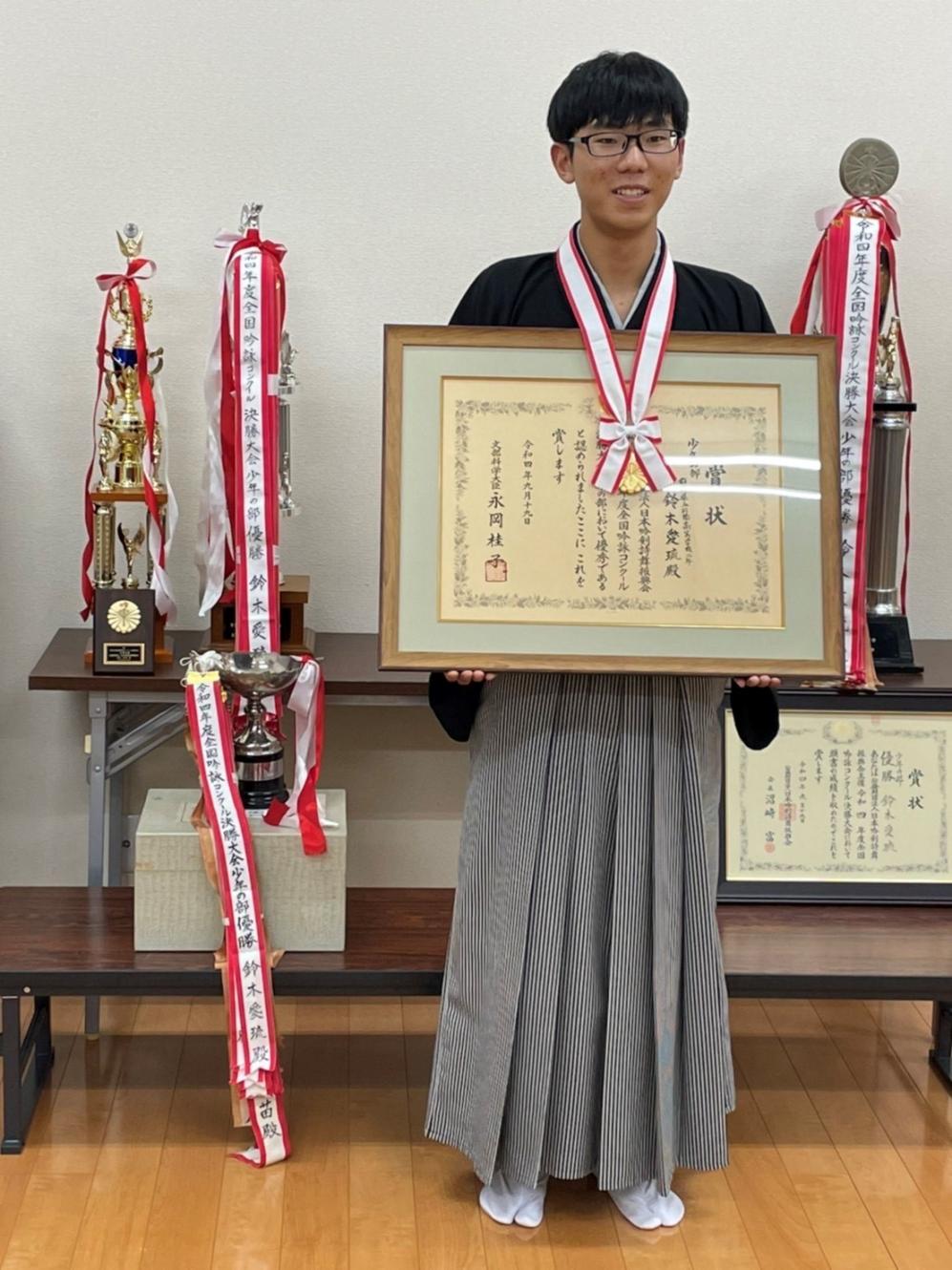 令和4年9月19日(月・祝)に日本教育会館一ツ橋ホールで開催された「全国吟詠コンクール決勝大会」で優勝!!